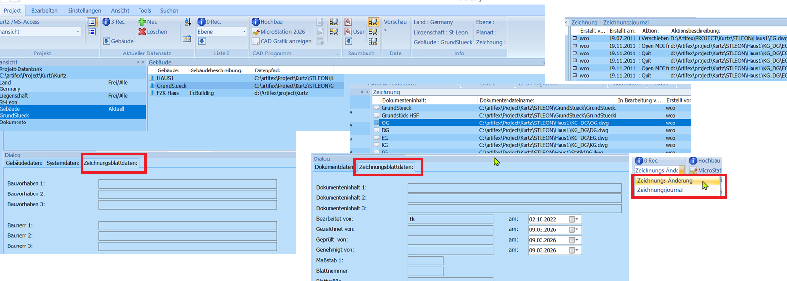 Für die Ausgabe von Listen, das Schriftfeld in Plänen werden Daten für das aktuelle Projekt wie der Bauherr, das Bauvorhaben etc.. sowie  Daten der Zeichnung wie Inhalt, Änderungen benötigt.