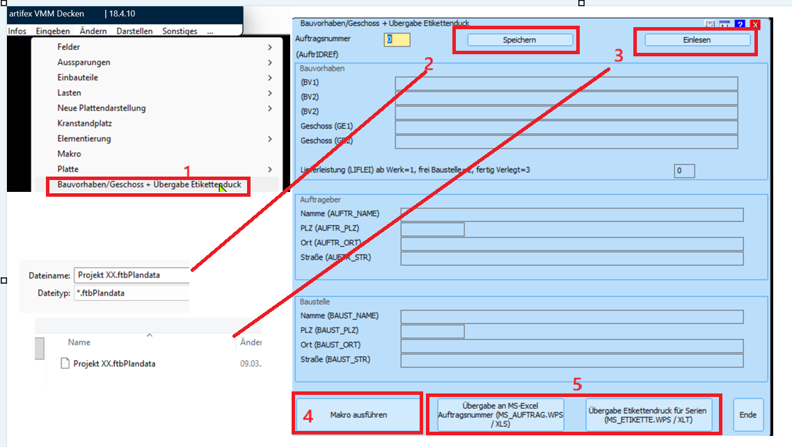 Das VMM Decken Programm wurde hier soweit erweitert, das auch ohne den Einsatz unserer Projektverwaltung einige wichtige Projektdaten direkt in der .FTP Datei mit gespeichert werden und auf diese in der Makrosprache zugegriffen werden kann.