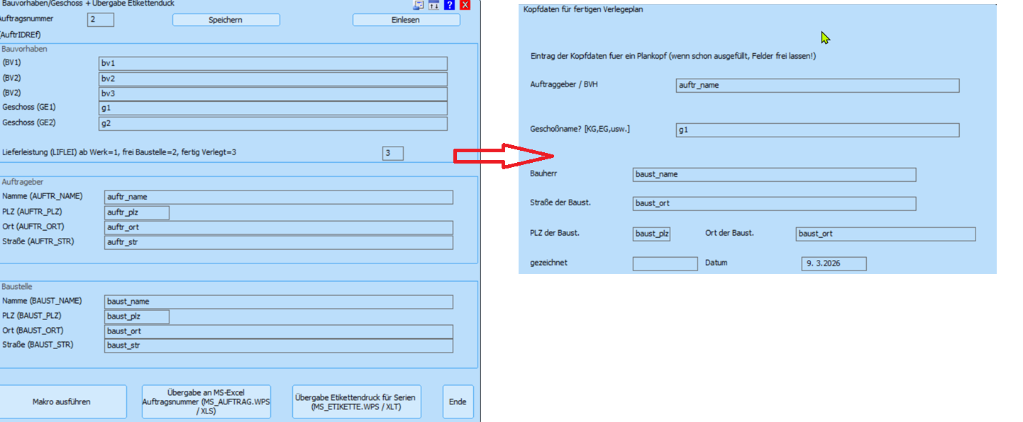 Diese Daten kann man komfortabel in unserem Projektserver verwalten, und die Makros für die Ausgabe der Listen, Schriftfelder greifen darauf zu.